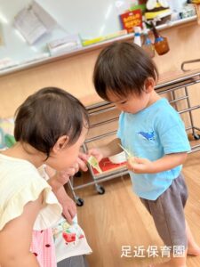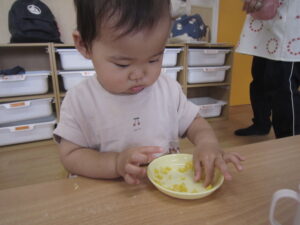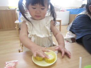 うれしそうに頬ばる子どもたちの姿が見られました。