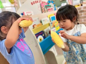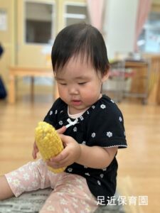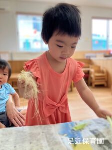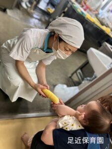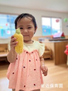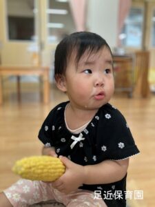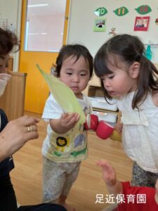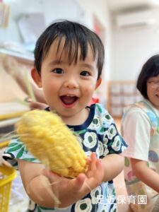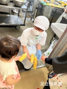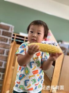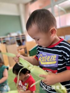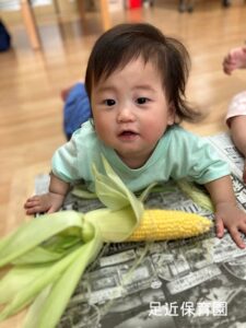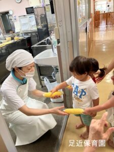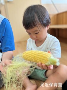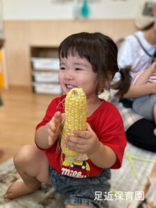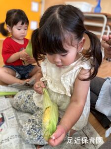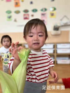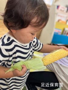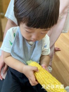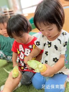 足近保育園では2,3年ぶりにトウモロコシの収穫ができました。