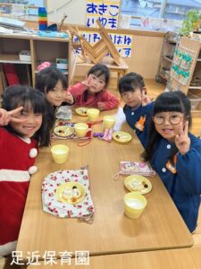 給食もクリスマスメニューでおやつにはロールケーキが登場し、園内はさらにクリスマスの雰囲気に包まれています。