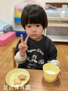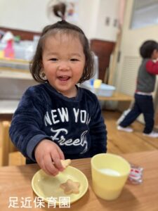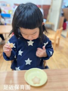 未満児クラスでは、きらきらおほしさまのクッキーがおやつに登場しました。